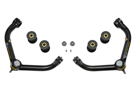 These upper control arms feature ICON's patented Delta Joint. The Delta Joint is a heavy duty high angle ball joint that combines the durability of a ball joint with the performance characteristics of a traditional uniball. While the industry standard uniball does a great job of allowing the control arms of a vehicle to articulate with little bind, they do have an inherent weakness that leaves more to be desired when used in a daily driven application - exposure to the elements. The Delta Joint features a zinc plated housing providing the first layer of corrosion resistance, while a tough grease seal keeps potentially harmful elements out of the inner workings of the joint. Metal on metal construction and a greasable design increase the longevity of the Delta Joint while at the same time allowing for noise-free operation. What makes the Delta Joint unique is that it brings the best of both worlds to ICON upper control arms with features that make it more robust than a uniball, and at the same time capable of greater angularity than a typical ball joint.