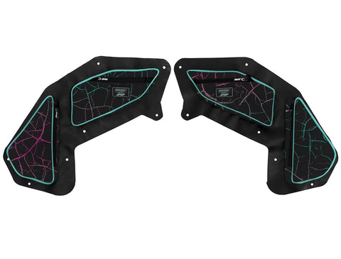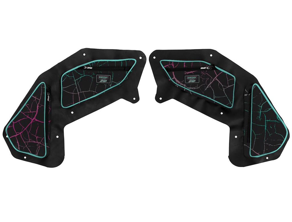 Add some shreddy storage for your passengers in the back with these PRP x Shreddy special edition Rear Door Bags for Polaris PRO XP4, PRO R4, Turbo R4. These bags are great for holding onto the extra items you need while you ride. Conveniently located right next to you on the door (so you can still access them while strapped in). Features two large storage compartments to keep all your stuff secure. Constructed with durable, puncture resistant, and water resistant material. Sold as a pair. Each bag is designed to perfectly fit inside the factory PRO XP4, PRO R4, Turbo R4 Rear Doors - Simply remove the door skin, and reinstall it with the bag between the door frame and skin. Re-uses all factory hardware. Works both with or without the Polaris factory lower door inserts. Sold as a pair (Driver and Passenger side).
