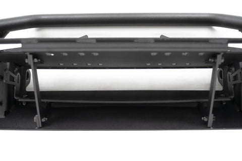 This stubby winch front bumper was designed to maintain good clearance off-road, recovery options, and supplemental lighting. It is compatible with the Wrangler JK & JL, as well as the Gladiator JT. Multiple size winches can be installed in a recessed winch tray behind the protective tubular bull bar. 1-inch thick D-ring mounts that take ?-inch shackle pins provide additional recovery options. An inset light mount in the center of the bumper fits the DV8 Elite 20?, Baja Designs 20?, or Rigid 20? dual row light bars. The bumper is finished in a micro-texture black powder coat, and features a completely bolt-on installation.